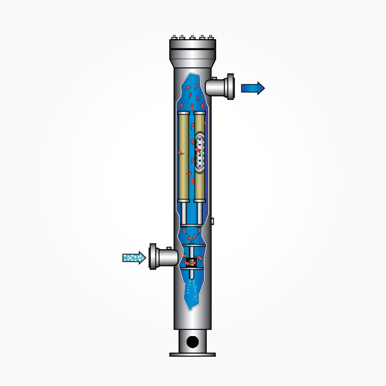 Використовуючи пакувальник повного діаметра, елемент косоїзу може бути замінений в найкоротший час і зусилля. Хідроциклон або демістер леза повністю без технічного обслуговування, самоочищення і не містять заміни або рухомих деталей, що призводить до відключення.